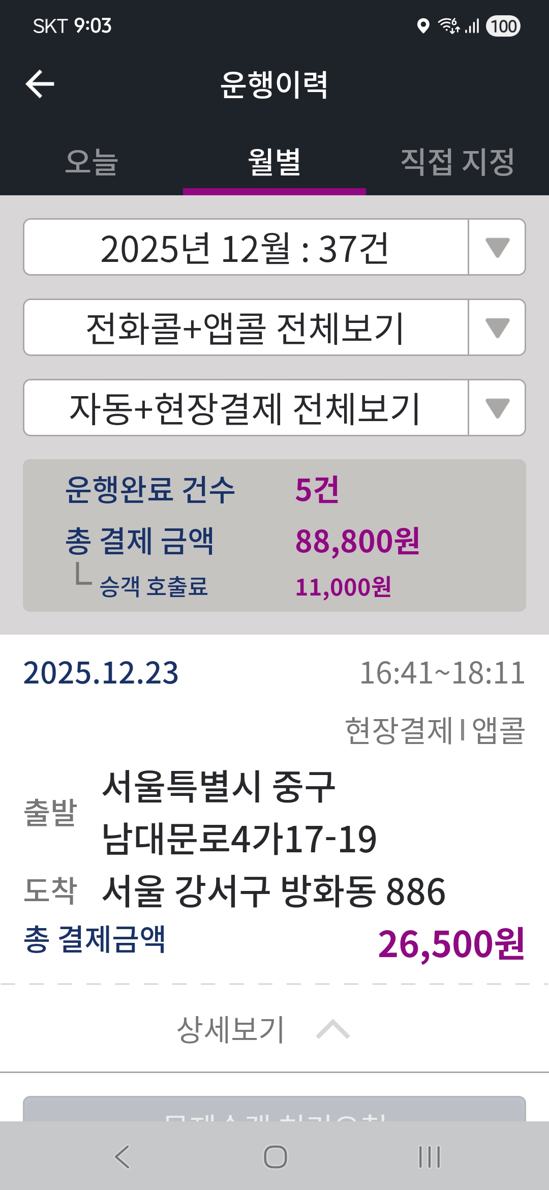 결국 국회의사당 역까지 모셔드리고 26,500원이 나왔습니다. 말하자면 1시간 30분 동안 시철앞에서 국회의사당 역까지 온셈이죠.